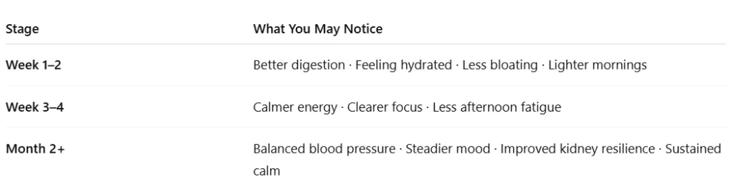 Wondering what to expect? Here’s a glimpse of how consistent use of Ubalance Naturals supplements, combined with mindful habits, can unfold over time.