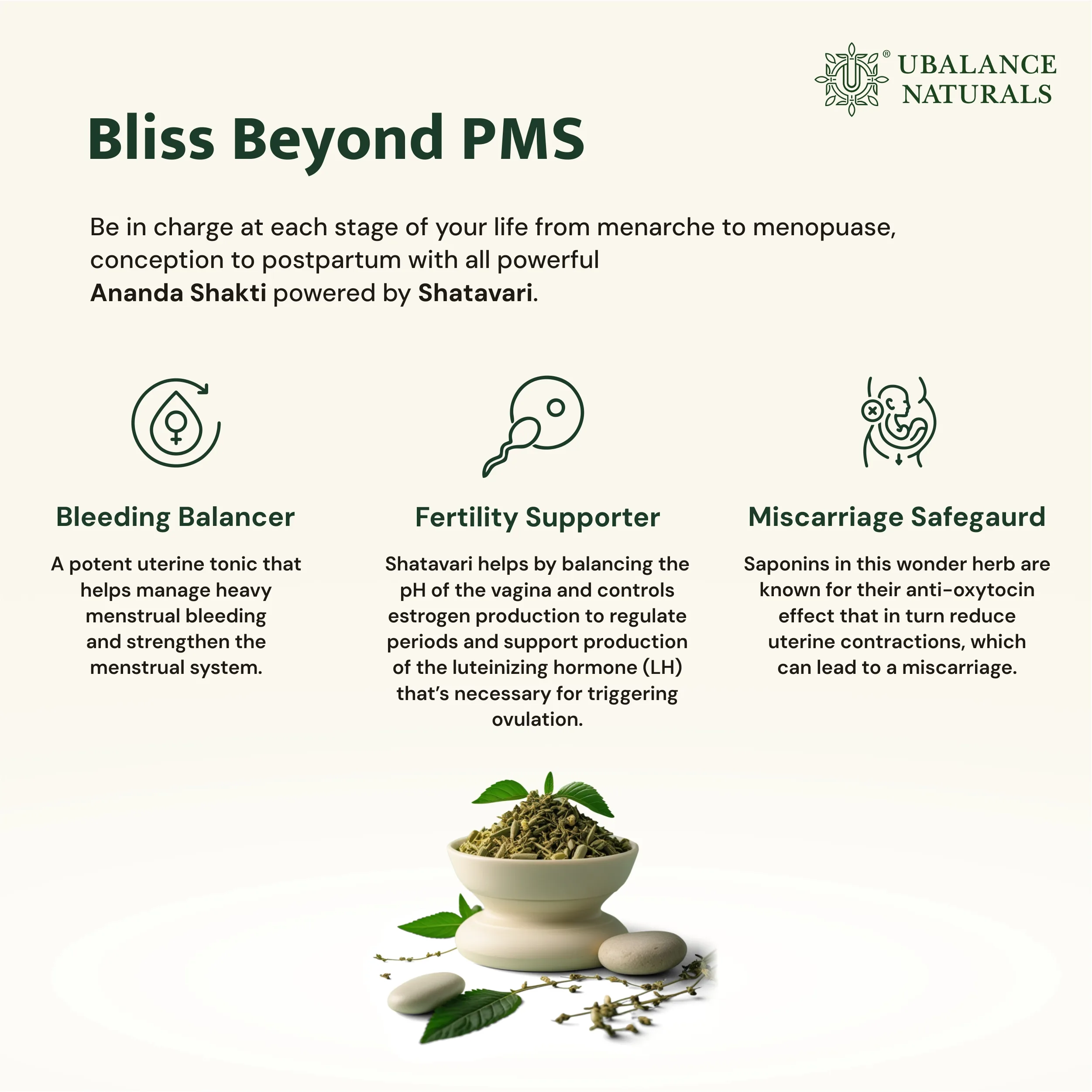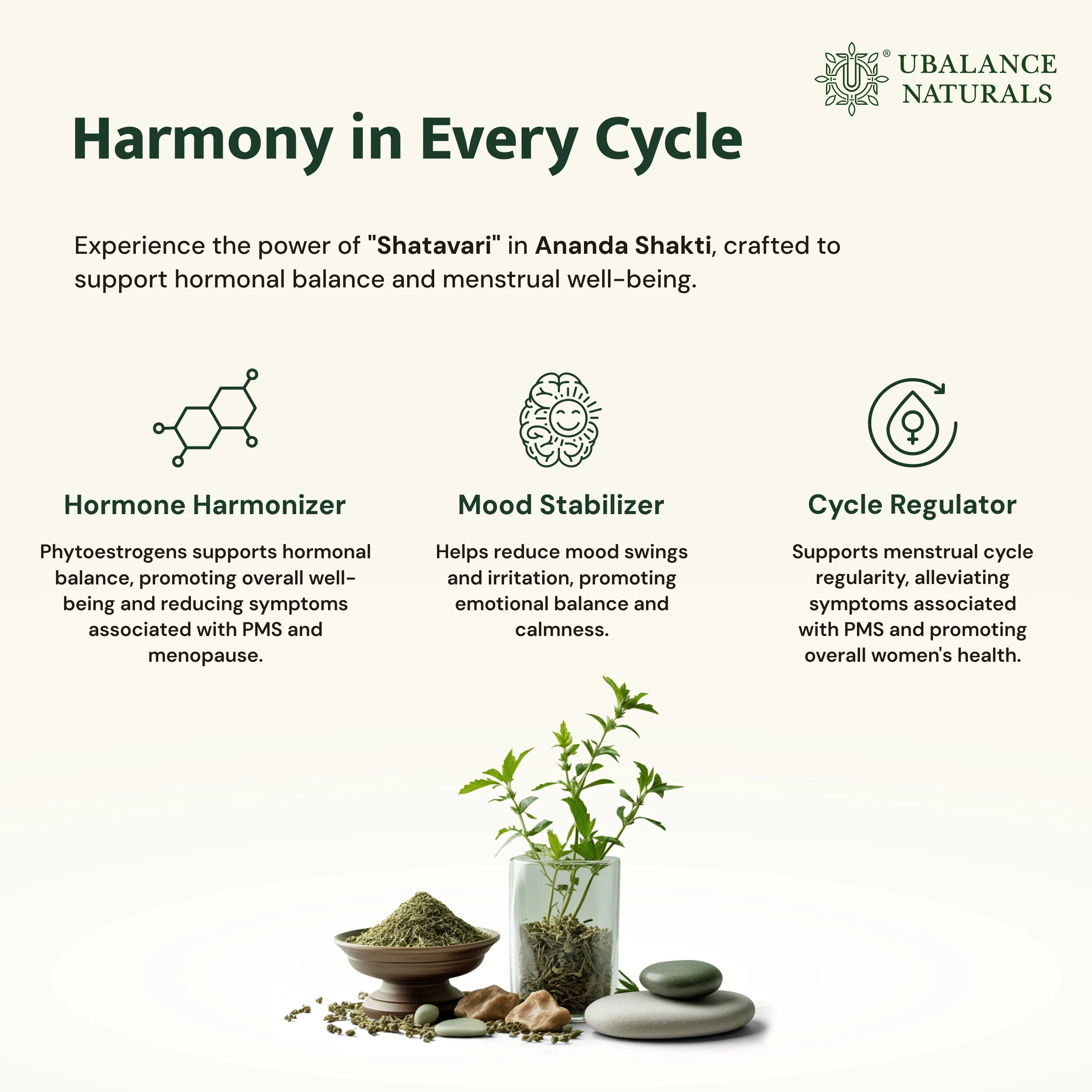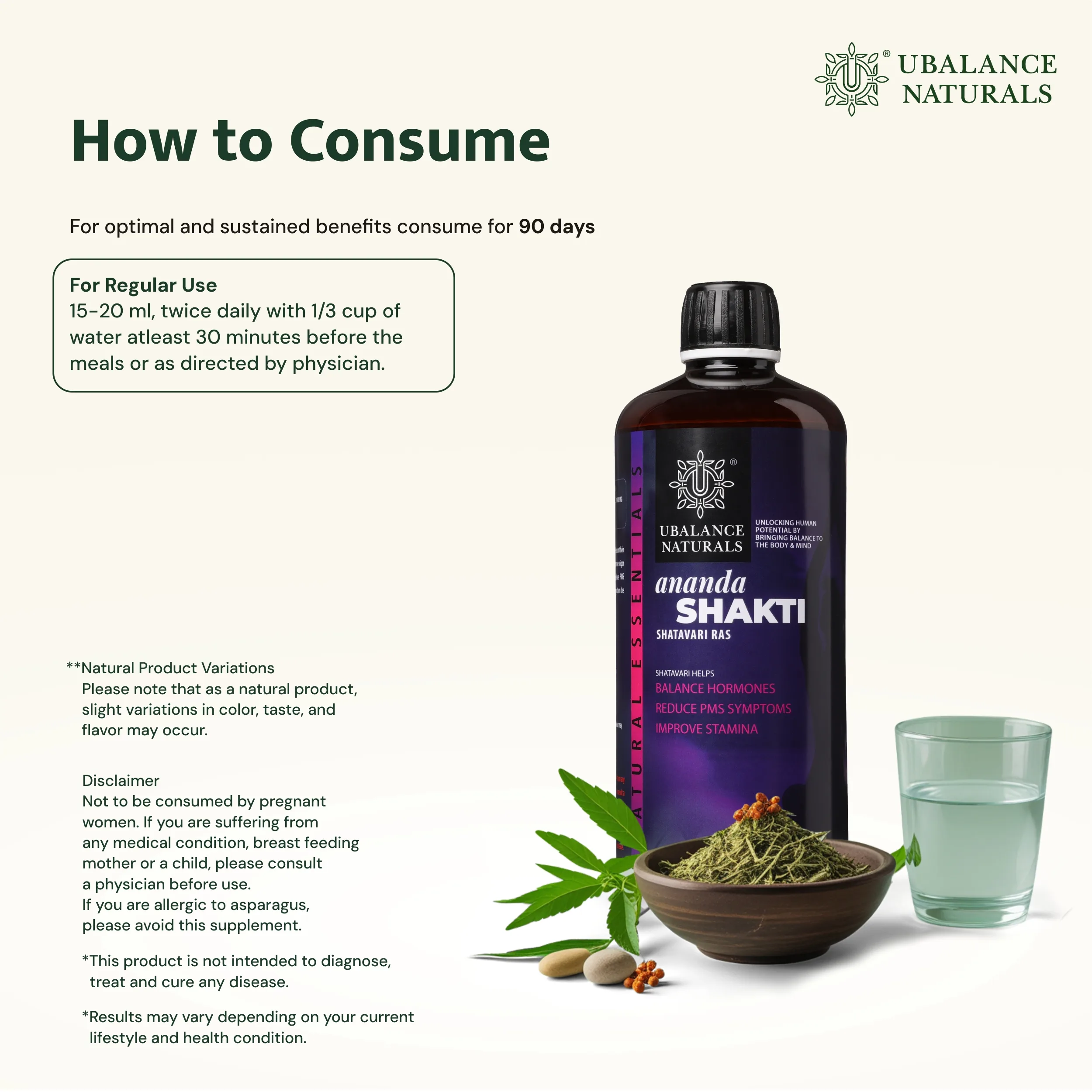 Ananda Shakti, the female-friendly tonic and a rich source of phytoestrogens, may work on balancing the female hormones, boost libido, increase energy levels, and might help boost the overall functioning of the reproductive system.