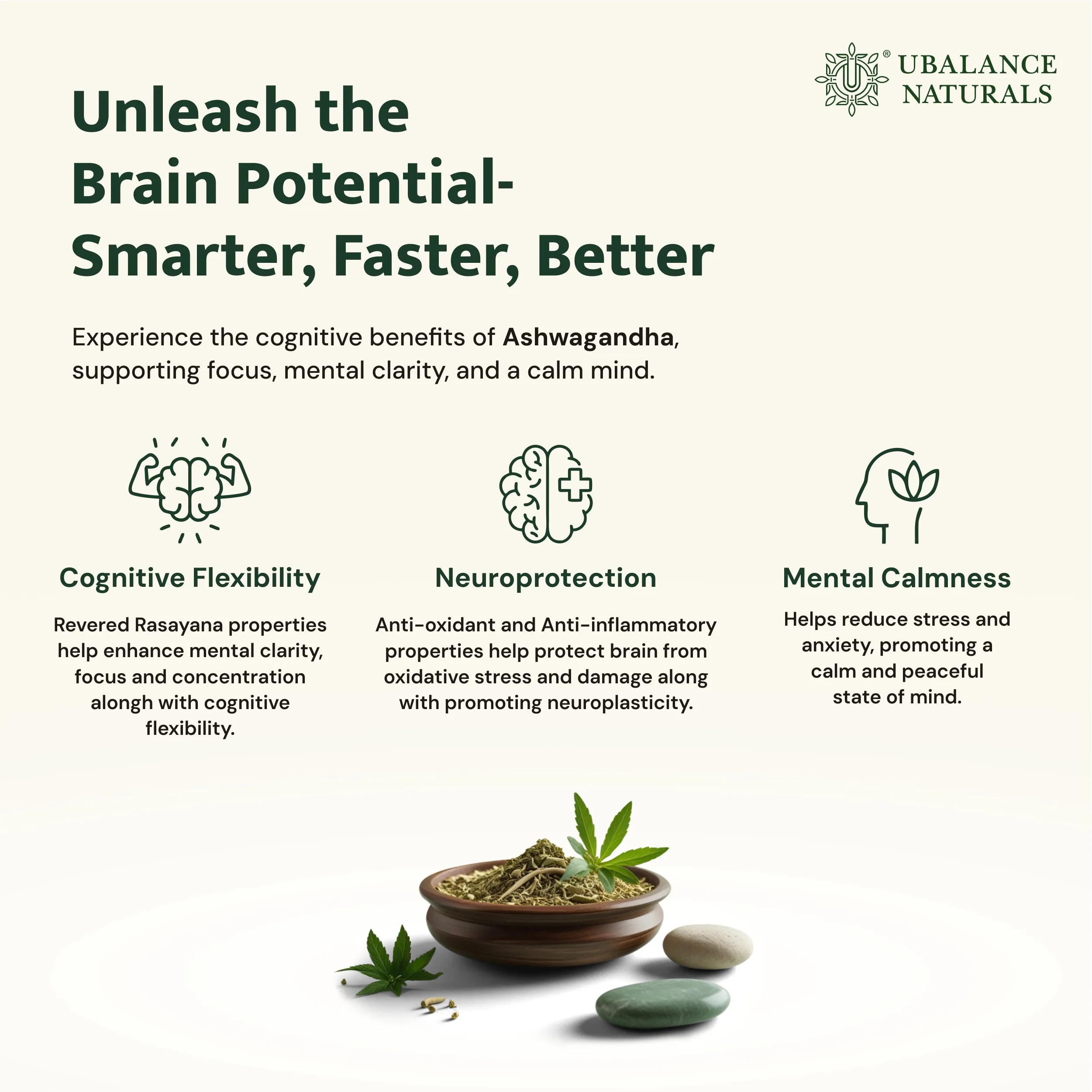 Studies indicate Ashwagandha may have the ability to improve as well as prevent loss of brain function.